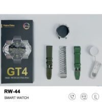 Haino Teko RW44 Round Screen AMOLED Display Smart Watch With 3 Pair Straps and Wireless Charger For Gents and Boys Green and Silver